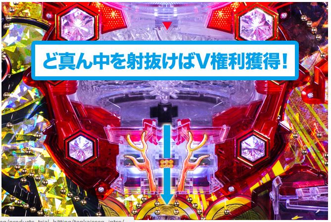 <p></p> <p>そして、下段役物へ。</p> <p> </p> <p>ここで玉がランダムに動き、真ん中のトゲトゲ棒を経由しながら、真ん中のVに入れば大当たり!!<br> メーカーの発表値は下段役物は1/4の確率です。</p> <p> </p> <p>つまり、</p> <p>上段1/3</p> <p>下段1/4</p> <p>役物確率は1/12という設定です。</p> <h2 id="-v-">動画~V入賞の瞬間~</h2> <blockquote class="twitter-tweet" data-lang="ja"> <p dir="ltr" lang="ja">当たりの瞬間 <a href="https://t.co/dCApGQ5ZC7" class="external">pic.twitter.com/dCApGQ5ZC7</a></p> <p>— ポトフ (@patinkazunet) <a href="https://twitter.com/patinkazunet/status/784696036442853377" class="external">2016年10月8日</a></p></blockquote> <p><script async="" src="//platform.twitter.com/widgets.js" charset="utf-8">真ん中に吸い込まれる瞬間、脳汁やばいですよ(笑)