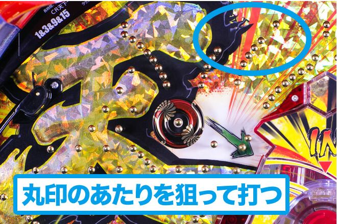 ①役物の飛び込み口を狙う
