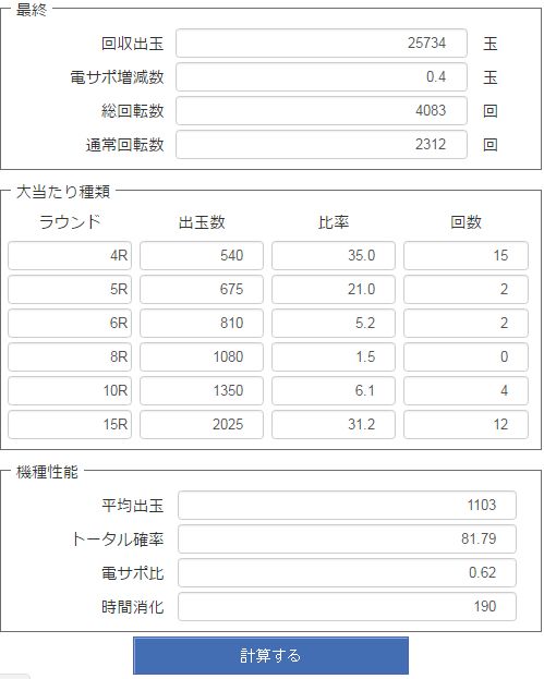 パチンカーズネット掲載値と比較すると、約2回転下がっています。