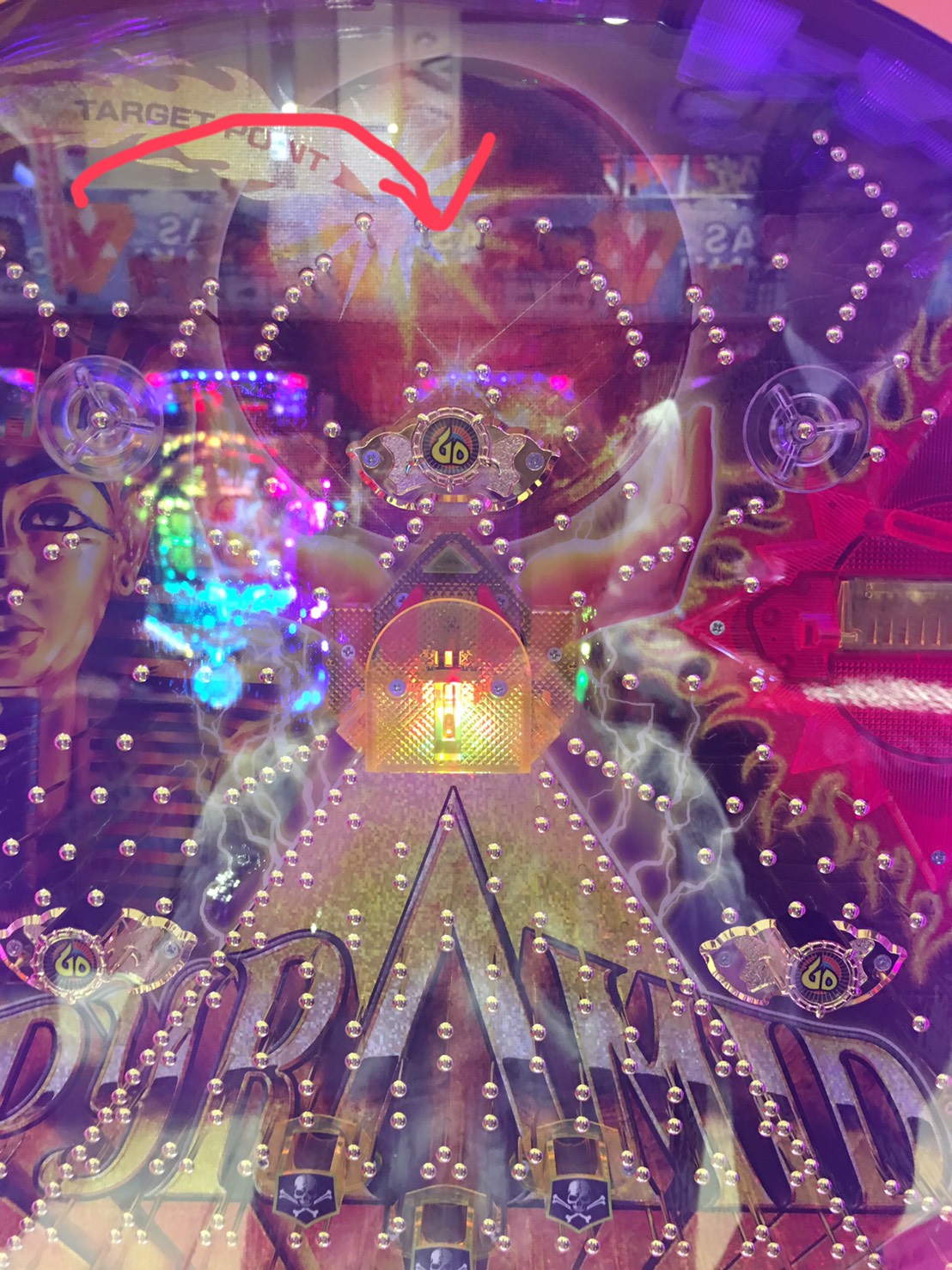 GO周辺、羽根周辺、ピラミッド内部、全ての釘を見る必要があります。