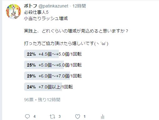 増減4.5玉~5.0玉/1回転という意見も結構ありますが、増減+7.0玉/1回転の意見も同じぐらいあります。