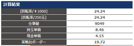 実践台はスルーの通り、電サポの拾いが若干マイナス調整で、電サポ増減-0.5玉/1回転となってしまいました。
