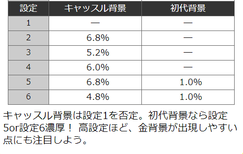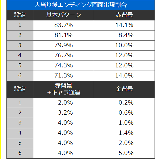 設定6が格段に甘い数値となっていますが、設定4と設定5でも結構甘めの数値となっています。