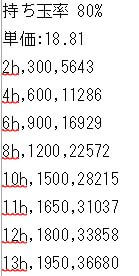 ちなみに回転率別の1時間あたりの差玉、時給は下記のような感じになります。