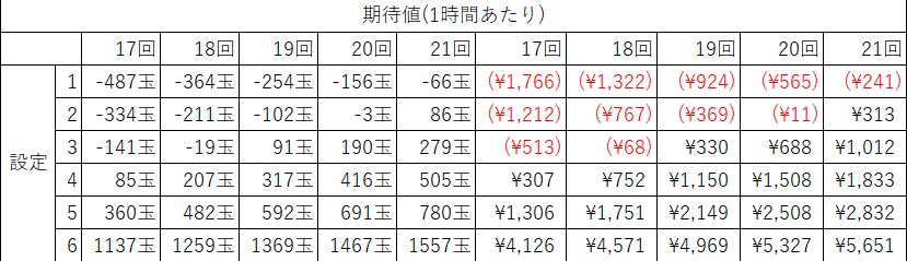 ちなみに自分の実践データから設定別等価ボーダー、期待値を算出する下記のようになります。
