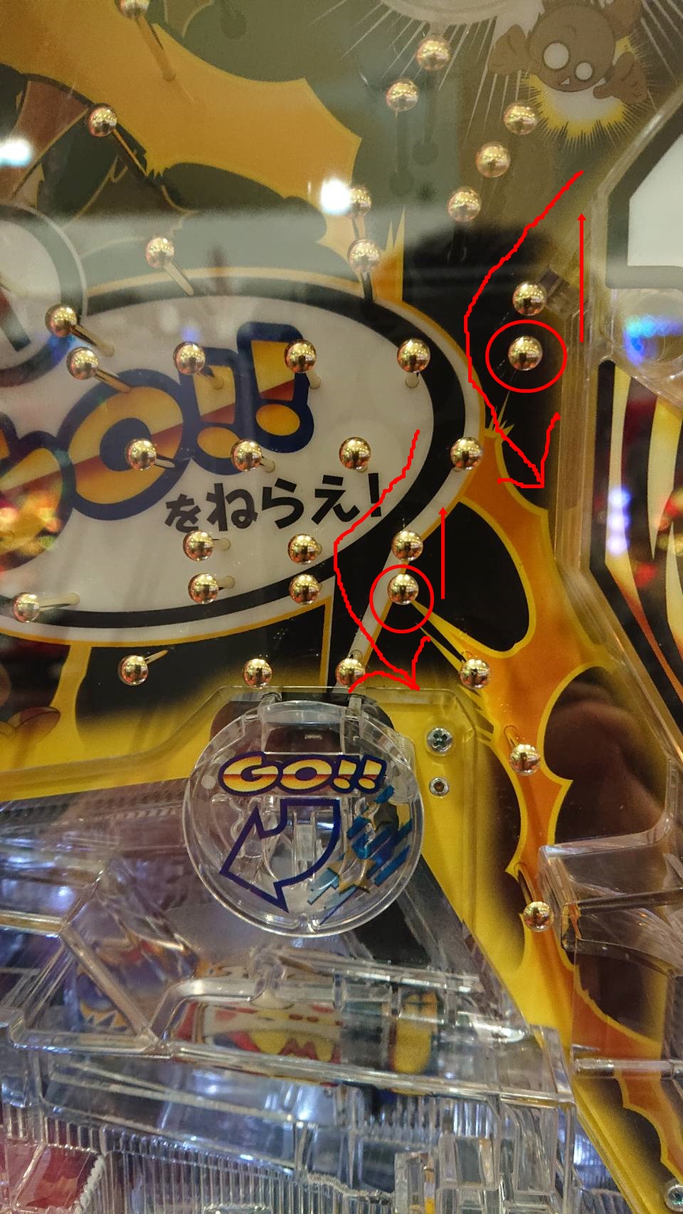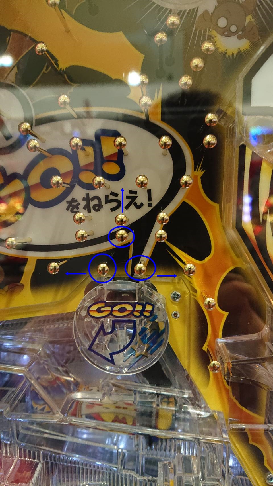GO入賞口の3本釘が上記のようにプラス調整が望ましいです。