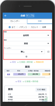 期間、項目、フィルターの組み合わせで収支が表示されます。
