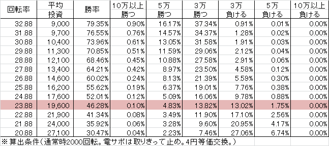 | 交換率 | 回転数/千円 | 推定持ち比 |