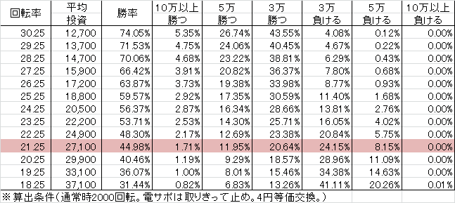 | 交換率 | 回転数/千円 | 推定持ち比 |