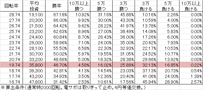 | 交換率 | 回転数/200玉 |
