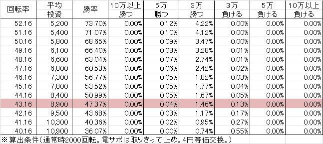 | 交換率 | 回転数/千円 | 推定持ち比 |