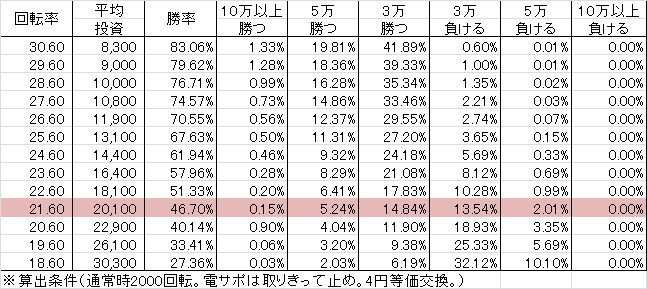 | 交換率 | 回転数/千円 | 推定持ち比 |