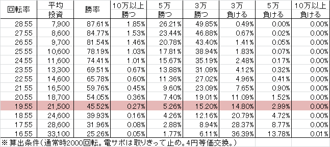 | 交換率 | 回転数/200玉 |