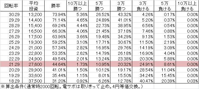 | 交換率 | 回転数/千円 | 推定持ち比 |