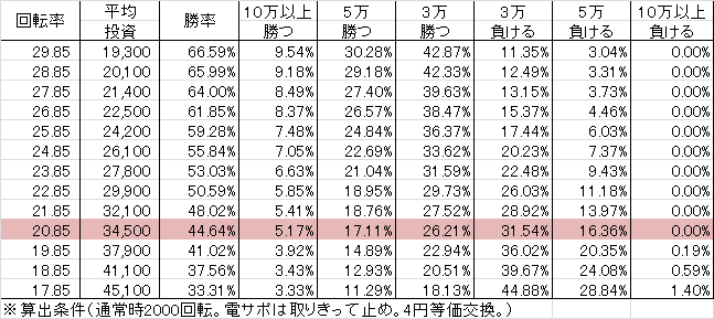 | 交換率 | 回転数/200玉 |