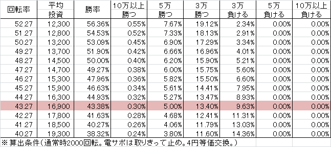 | 交換率 | 回転数/千円 | 推定持ち比 |