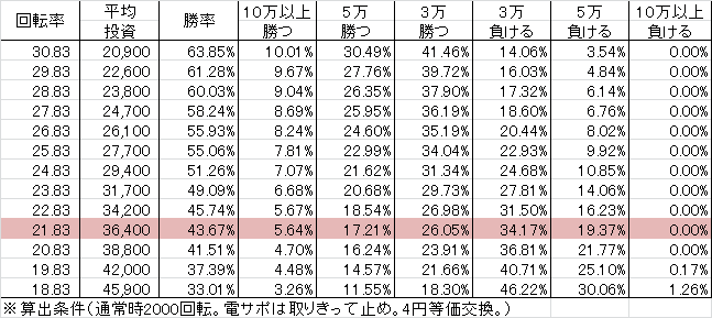 | 交換率 | 回転数/200玉 |