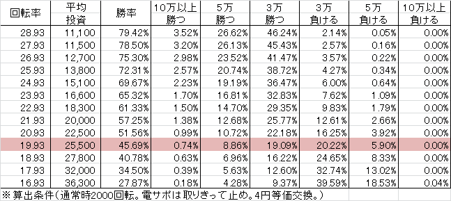 | 交換率 | 回転数/千円 | 推定持ち比 |