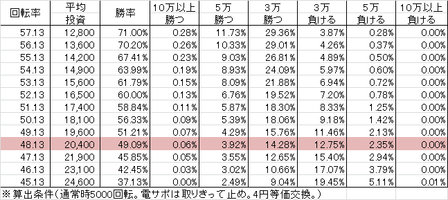 ※勝率、シミュレーションは1日の回転数を5000回転として計算しています。