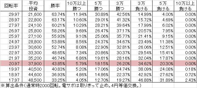 | 交換率 | 回転数/千円 | 推定持ち比 |