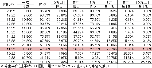 | 交換率 | 回転数/千円 | 推定持ち比 |