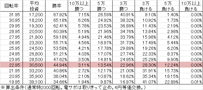 | 交換率 | 回転数/千円 | 推定持ち比 |