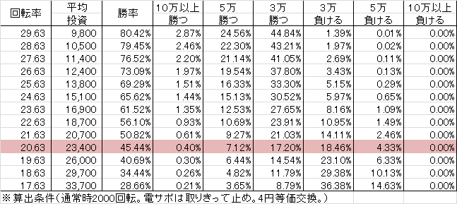 | 交換率 | 回転数/200玉 |