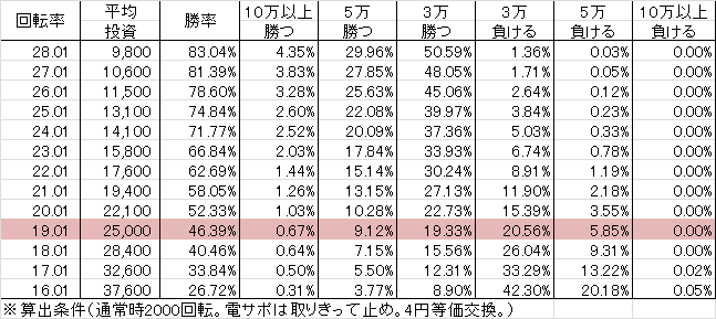 | 交換率 | 回転数/千円 | 推定持ち比 |