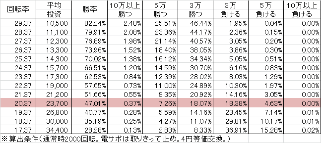 | 交換率 | 回転数/千円 | 推定持ち比 |