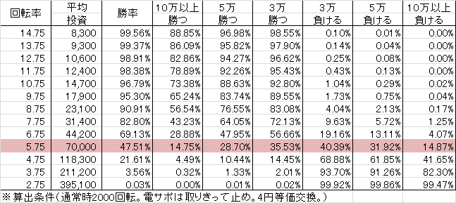 | 交換率 | 回転数/千円 | 推定持ち比 |