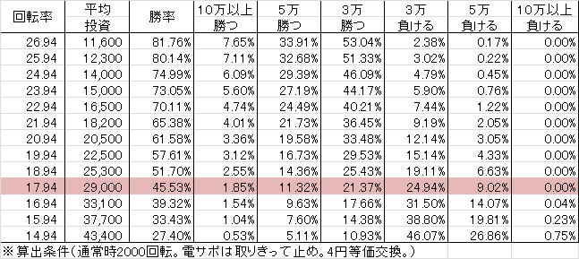 | 交換率 | 回転数/千円 | 推定持ち比 |